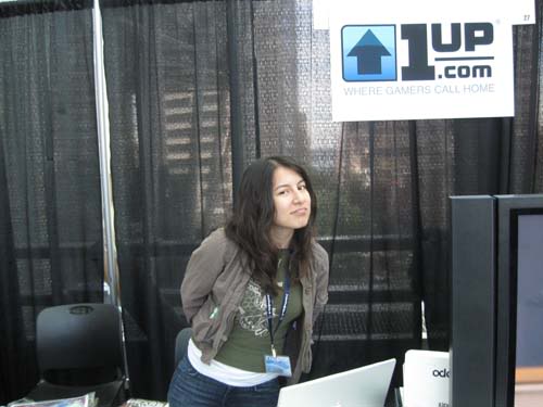 Running back upstairs, I made sure to take the time to finally visit the 1UP booth. I was greeted by 1UP's Tina Sanchez, who was kind enough to pose for a photo. She also gave me a swell Gears of War novel and information on the 1UP GameWorks meet-up. I said I'd see her there, and returned to the interior of the exhibitor hall.