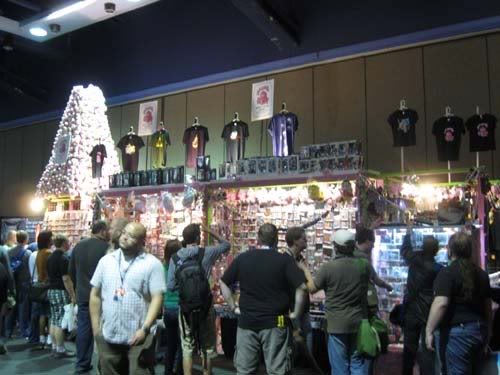We eventually entered the exhibitor hall. The outer area no longer hosted the Bring Your Own Computer section, and now contained vendors like Pink Gorilla and the anime store Sweet Kitty, along with booths for some of the more independent companies. Since I'd already charted my course during the wait, I jetted past all these exhibits for the time being.