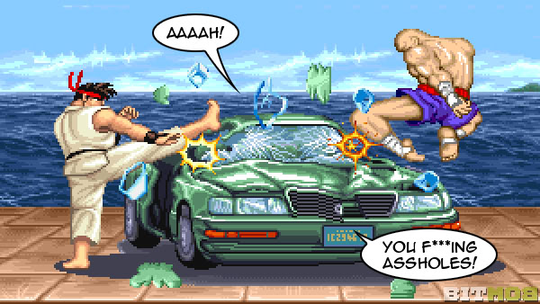 Wouldn't you like to know who owns that car? And why does it magically appear in Ken's stage even when your fighter is no longer in the U.S.A.? Now that I think about it, Capcom has been destroying cars since Final Fight.
