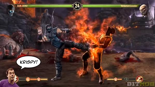 Mortal Kombat's (2011) Challenge Tower #57 goes by the title of "The Burning Man." I expected to fight Blaze's MK2 incarnation, but instead I battled a lame tarkatan engulfed in flames.