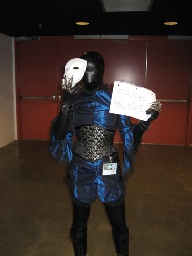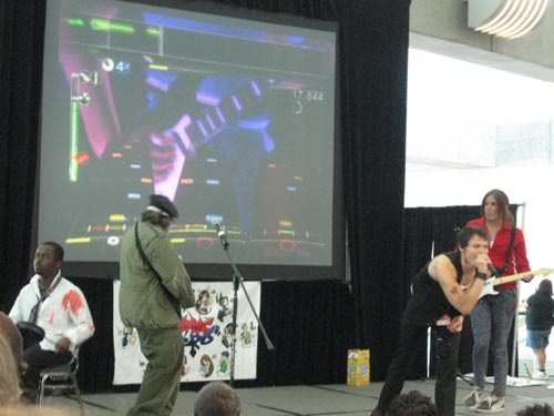 We walked upstairs right on time to witness part of the Rock Band 2 tournament. A band dressed up like the main crew from Left 4 Dead was on stage. They played Blue Oyster Cult's Don't Fear the Reaper. I have no idea who won since we didn't stick around for the conclusive round due to an autograph session.