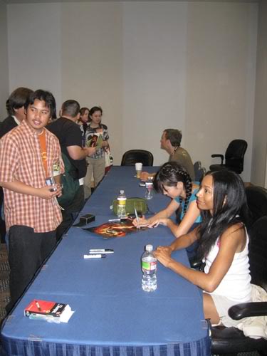 Which autograph session did we go to? It was the one for Resident Evil! Our little group got to meet Ken Lally (Wesker in RE5), Patricia Ja Lee (Jill in Umbrella Chronicles), and Karen Dyer (Sheva). We had each of them sign the back of our badges since we didn't have any actual RE merchandise with us.