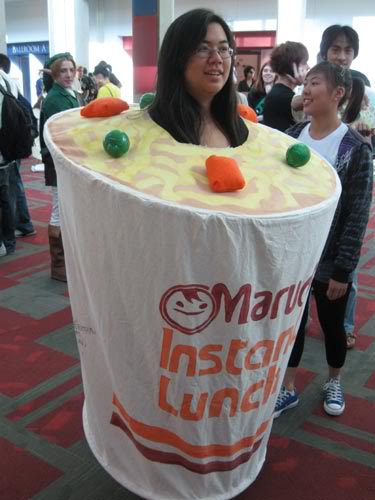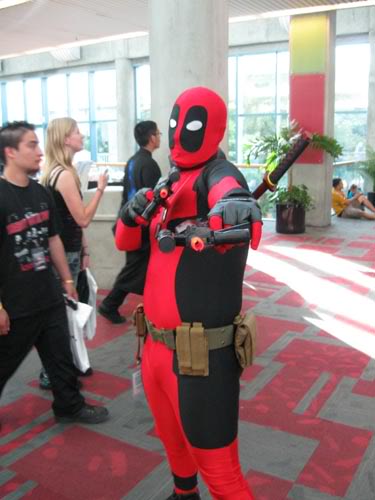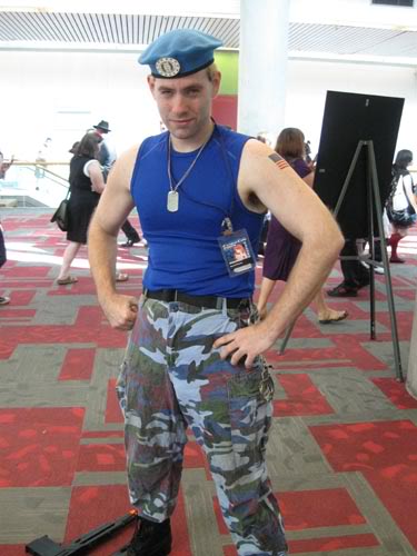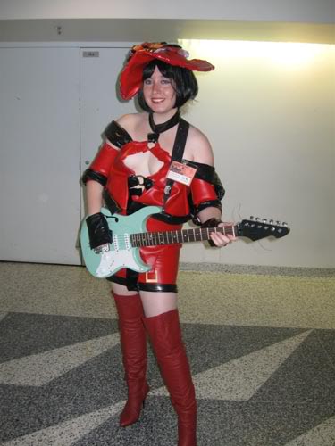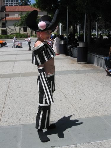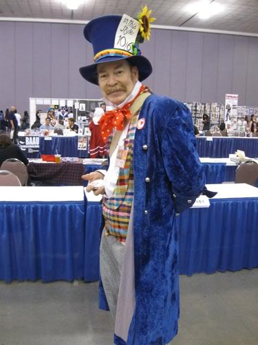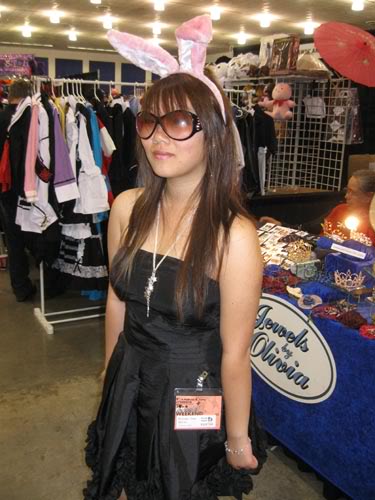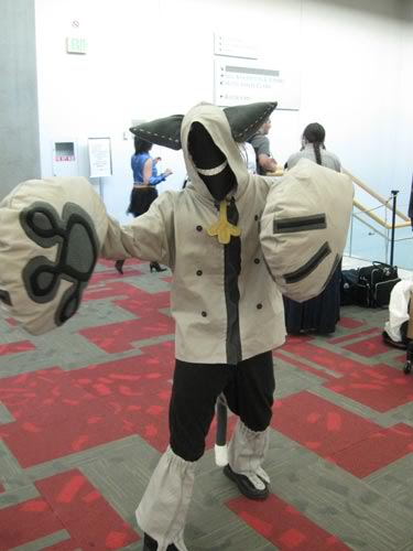 Sunday was not as busy as the previous day, but we still had a few things to do. Besides our usual cosplay hunting, we had two specific tasks on our agenda. First of all, Andrew's sister Julia wanted to invest in a cute hat. Julia gave us a quest to photograph some of the headgear being sold in the dealer hall so that she could see if they had anything interesting. I'd say that the vendor shown above had the best selection of hats.