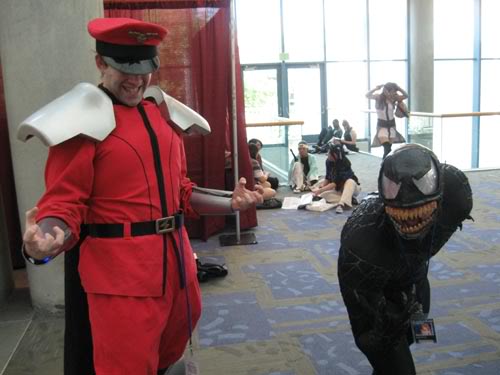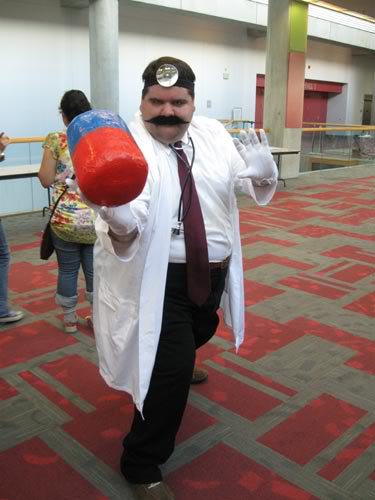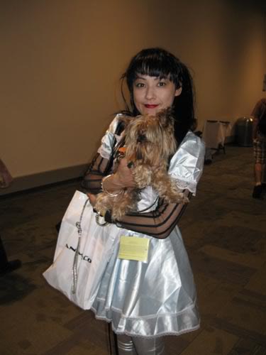 The dealer hall opened up about an hour ahead of schedule, so the three of us walked in to see what the vendors had to offer. Of course, I tried to navigate our group towards any booth that might possibly carry video games. During the scouting process, we passed the exhibit shown above, which sold creepy little Japanese dolls. No offense to those who buy these things or the shop's proprietor!