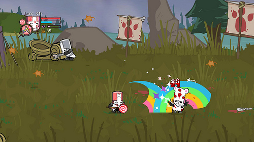 The Pink Knight will come with its own magic, lollipop, and 4 additional new weapons to choose from. Sarah, an avid Castle Crasher fan of South San Francisco said, “Finally, something girly to compete with all the manliness of the game. I look forward to shooting rainbows at the bat boss that leaves guano everywhere.”