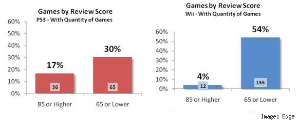 WiiWare is a bit of a wash seeing as PSN and XBLA have all seemed to agree to rarely release sales statistics [unless their game sells like gangbusters]. Critically, Nintendo seems to be feeling the pangs of their quality versus quantity structure. Is it their fault that major and minor studios want to come far and wide to work with one of the most established names in gaming? There is even the argument that games cost a "a fraction on the Wii than they do on the PS3 or 360." However, why do the games not staring a plumber, hedgehog or some sort of PVC piping peripheral device meet critics and the Wii audience with a resounding thud?