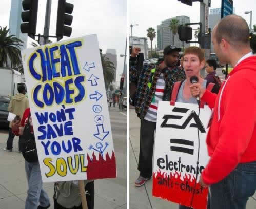 I was just surfing online when I cam across this picture. It should take long for it to register that this is from E3 when EA was doing their Dante's inferno stunt. Personally this whole marketing was a joke with the jiggle bells and anime, this whole thing was a mess. But after seeing this picture did I start thinking, with Gow3 coming in March and Dante's in Febuary, which game are gamers gonna choose?