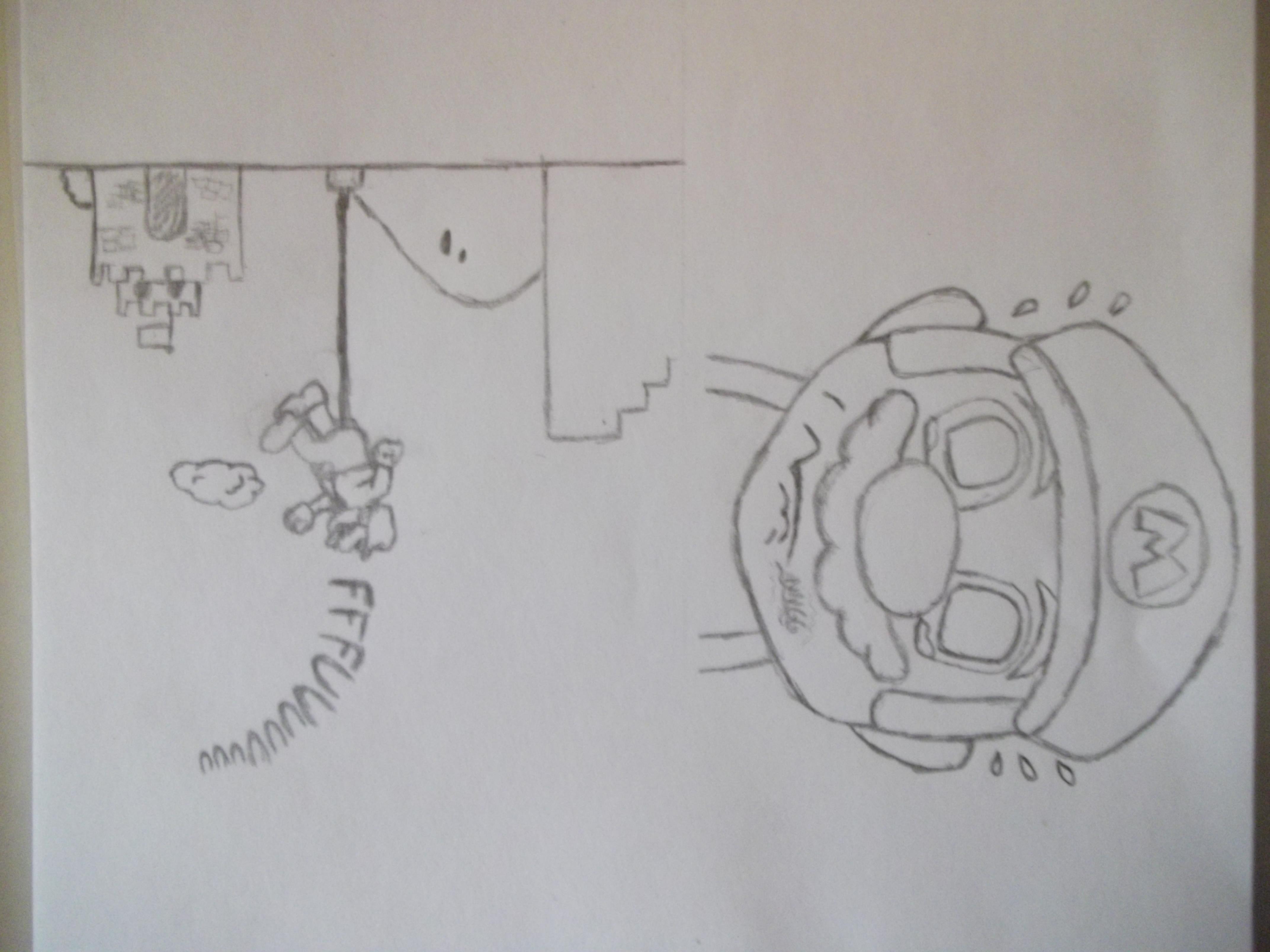 It's time for morbidity and humor: In an attempt to act like Wednesday's funeral wasn't real, I spent all my time and attention to complete my very first web comic ever Tuesday. The final drawing is a bit more crude than the original sketches, but I had to redraw the entirety, as my scanner is dead also. Drawing things with a mouse isn't easy, so the result is still good for a first ever thing. It was inspired by my recent attempt to replay Super Mario Bros in celebration of his 25th anniversary. Enjoy Mario's Leap Of Faith: