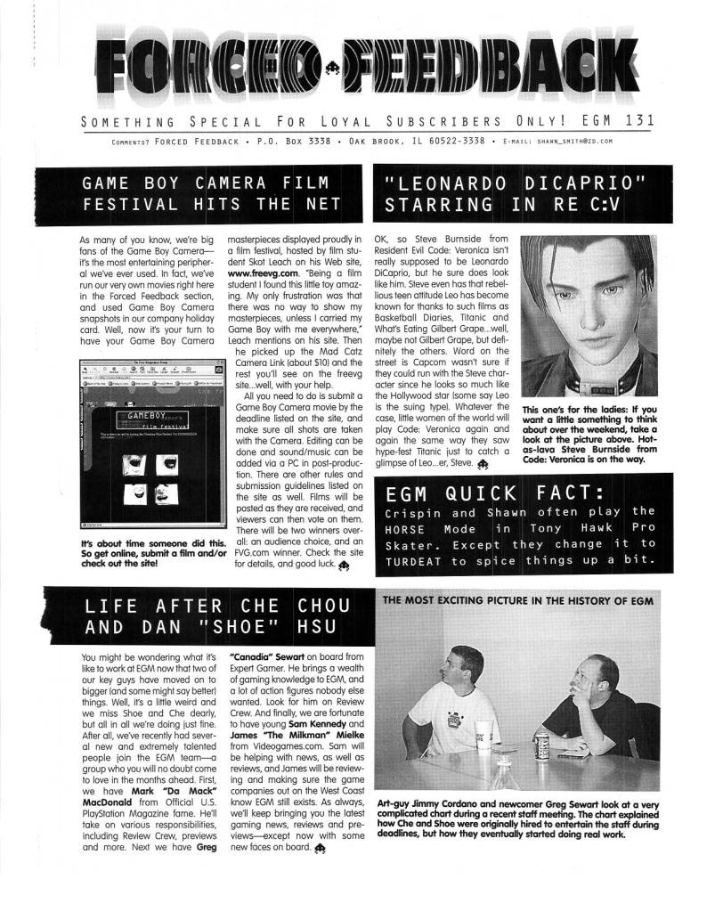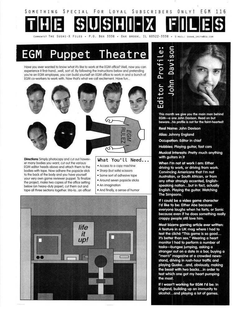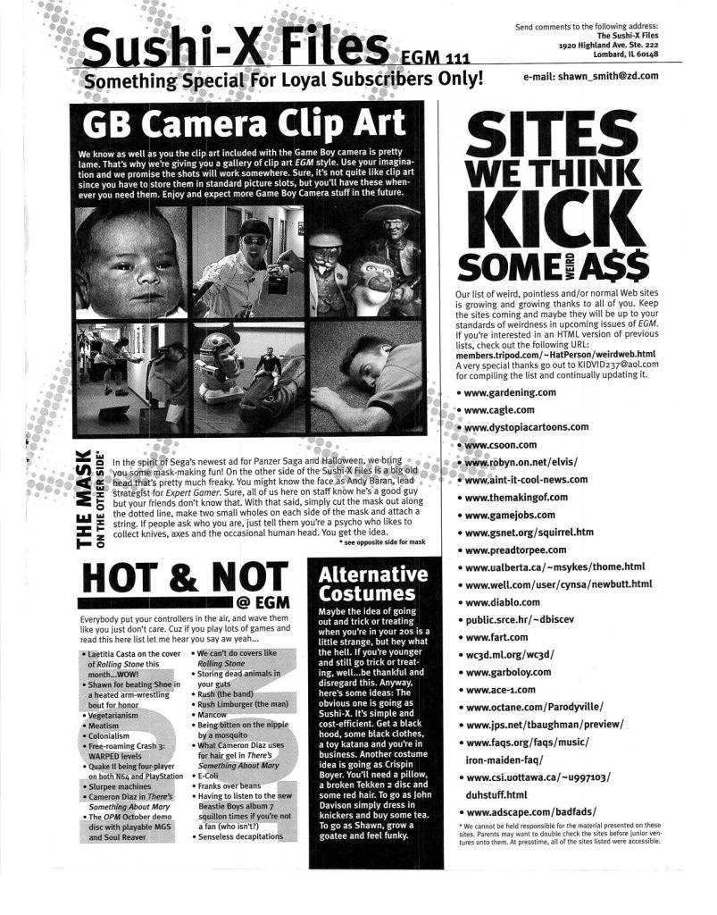 Another thing that separated EGM from the rest was the cool things they would go out of their way to do for their loyal subscribers. Cool extras like posters, stickers, move lists, mini guides, etc. were always appreciated, but what I always loved were “The Sushi-X Files” inserts, later known as “Forced Feedback.”