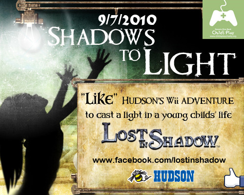 Hudson will donate 10 cents to Child’s Play Charity for every person who “likes” Lost In Shadow on Facebook and will up the donation to one dollar for anyone who changes his or her Facebook profile picture to one depicting a shadow.
