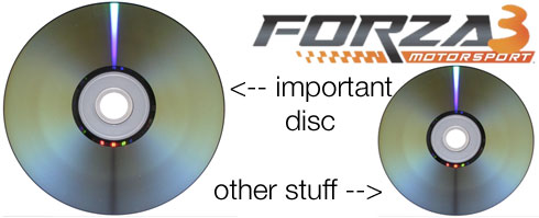 For those of you not in the know, Forza 3 comes with 2 discs. The first disc is the game with the bare essentials some cars and some tracks. The second disc comes with extra cars and all the tracks meant for the game.