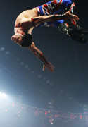 At this point in the interview, Donahoe picks me up and and throws me to the ground. He jumps up on the nearest table and performs -- as I learned when a WWE fan screamed it out, mid-performance -- the Shooting Star Press.