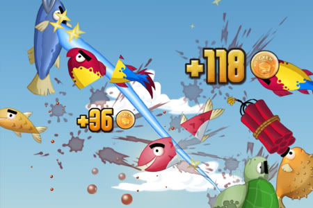 Ninja Fishing is a colorful iPhone game with a chubby, masked ninja protagonist. At first glance, the resemblance to Radical Fishing looks coincidental. Spend a few minutes with it, though, and it won’t take long before you’re wondering if the developers sat at their desks with Radical Fishing open in a browser window during the development process.