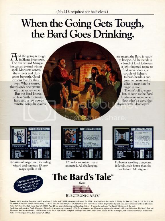 As fantastic as the games were, The Bard's Tale series also had its own ups and downs. As Rebecca Heineman recalls in an interview with Matt Barton on Gamasutra, the second game was intentionally aimed at killing players (via the Death Snare dungeon puzzles) than in being as fair as the first and third games. This was apparently thanks to the Lead Designer Michael Cranford's preference for being the kind of me-against-everyone Dungeon Master who likes seeing players die. But as Fargo's high-school friend, I guess he had earned a little leeway in what he wanted to do.