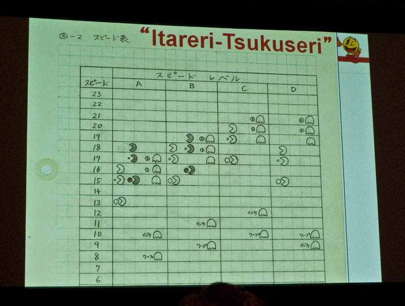 So that happened, but then he also showed a handful of never-before-seen design doc images for Pac-Man that are pretty cool, which I've saved for posterity below: