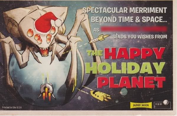 In the scans or emailed jpegs below, I've obscured key wording that would give away who sent that holiday greeting. The answers and original images are on page two.