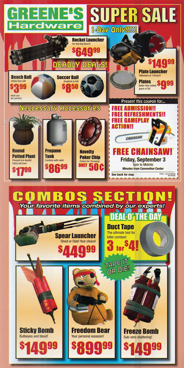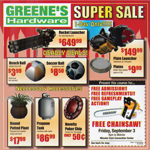 To promote this community event (that means you're all invited), Capcom PR firm Fortyseven Communications distributed these circulars for the "Greene's Hardware Super Sale." Check more of these out, as well as details for the event, after the jump.