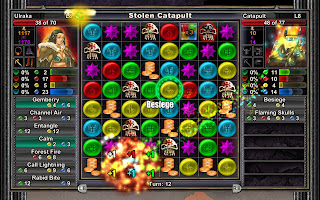 L: I was able to get my mount up to level 20, but at that point my opponents were not killing me, I was killing myself (5 damage done to self for turns > 3 seconds). It got a little out of hand. While you do cap out at 40, you can still use gold to buy skills in your Citadel. I may continue to play and see how high I can max out my wizard. There is also the challenge of capturing more mounts and learning additional spells. I think this was a neat addition to the game, especially when I received Stomp – one that would randomly push down the board, usually having devastating effects on opponents.