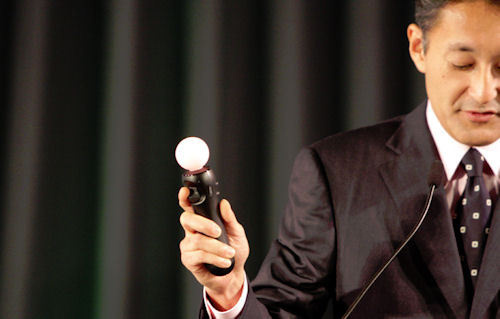 Here we see Kaz Hirai, CEO of Sony Computer Entertainment, Inc., holding either one of the greatest achievements in gaming technology or a glowing paper weight.