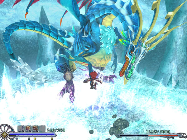 They're also action heavy arcade-style slashers with just enough RPG aspects to them to keep them in the genre. Characters level up, buy new items, fight monsters, and even use materials to improve armor and weapons in certain titles. There's also a very specific formula to each one in that it's possible to push as far as you think you can go before encountering monsters so powerful that they would use Adol's head as a cue ball. The later titles don't fence in the player too much and let the critters do most of the work for them instead. There's clearly a basic strategy in getting through each one.
