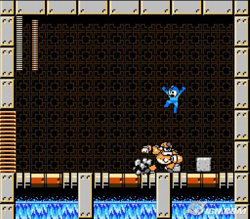 The track is unstoppable. It's hyper and upbeat and speaks of an adventure full of action and risk and triumph. How inappropriate then that the level Concrete Jungle is background music for (Concrete Man's stage) is nearly incongruous. Just like I feel my late introduction to chipmusic instrumentation did not fit my musical mindset or gamer status in 2009, the flow and structure of Concrete Man's level in Mega Man 9 simply does not keep up with the flow and tempo of its music. Sure there are plenty of enemies and obstacles in the first segment, but the colors are muted, the risks flat and empty, and the design eventually devolves into a rehash of traditional Mega Man tropes, making the action predictable and a little silly. Somehow dodging the careening ball of a third, identical robo-circus elephant does not match the exhilaration I feel when the arcing crescendos of Concrete Jungle are hitting their peaks.