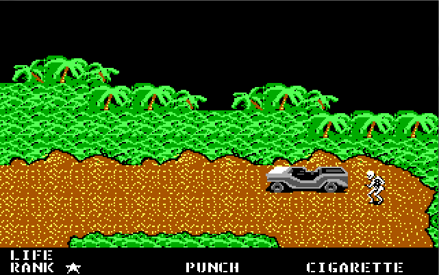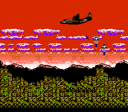 With a more limited colour palette, the people involved with porting it to the NES resorted to brighter colours, which killed the dark and gritty tone of the MSX2 version, and the whole opening segment was altered to include a jungle infiltration scene. In it, Snake parachutes into the jungle with two other soldiers; we don't know who they are, and we never find out either.