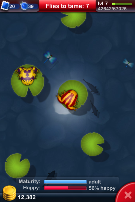 In that sense it is very much like Farmville. You don't have actual objectives besides occasional requests to breed a certain type of frog. The only motivation is obtaining enough experience through breeding to level up and hopefully encounter rarer types of frogs and keeping the ones you have happy by taking them to the hopping pond and playing minigames.