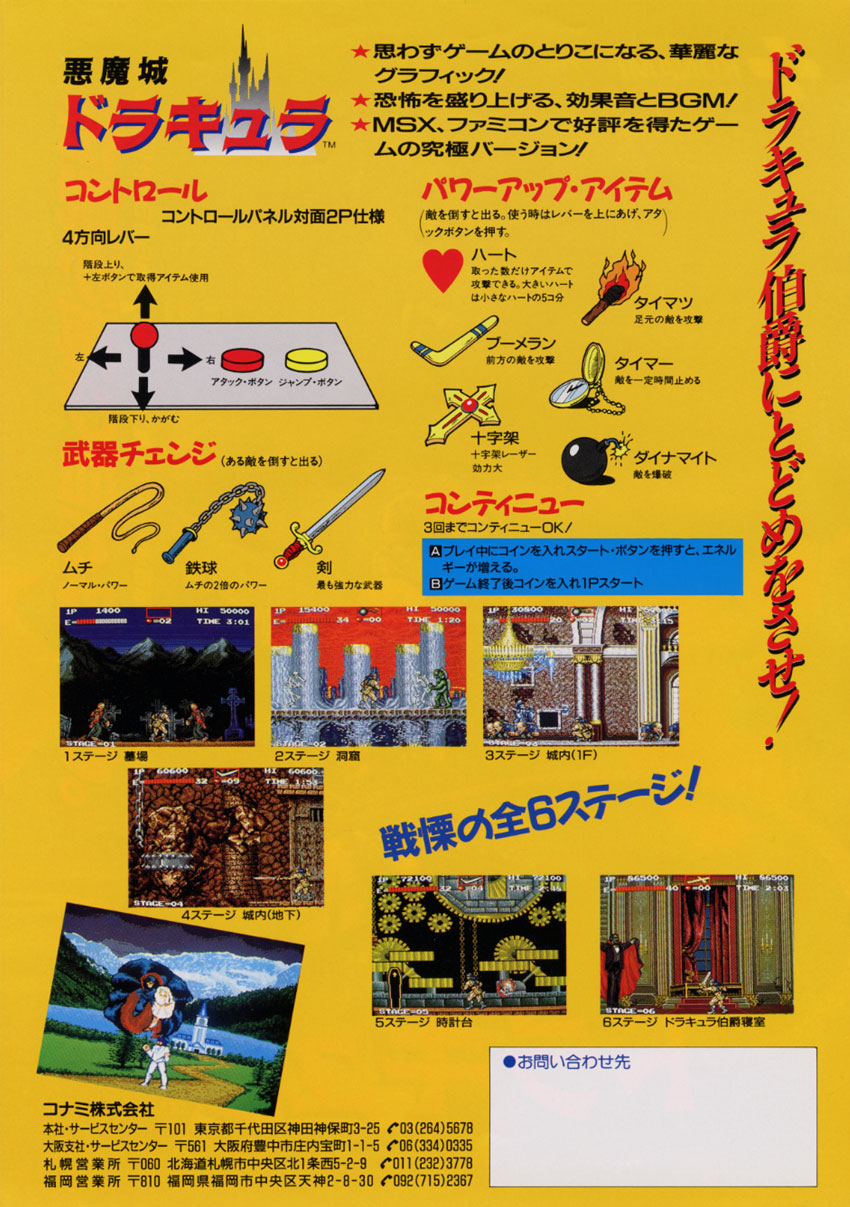 The Castlevania series doesn't seem very compatible with arcades, but that didn't stop Konami from releasing Akumajou Dracula in a standing cabinet.