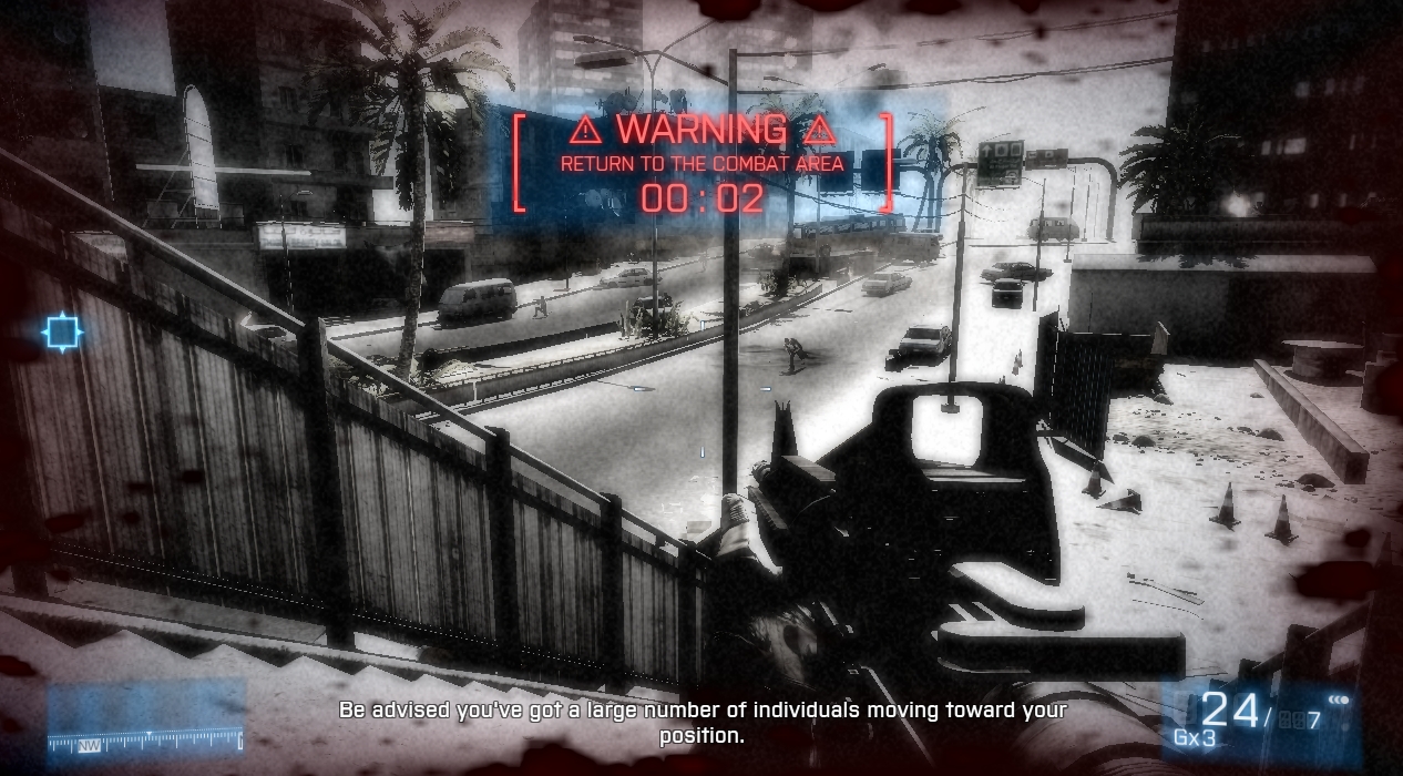 So, while the rest of the industry succumbed to CoD4’s disruptive waves, Battlefield set out to shore up its tracks. Both Bad Company and Bad Company 2 introduced a number of new gameplay mechanics that changed the way one could play a shooter: destructible cover, weapon-based progression running alongside soldier progression, and vehicles. It gave us a still greater landscape upon which we could both run and gun. Its intention and goal was not to simply design a more elaborate corridor in which to run in, but rather a more elaborate means of running through it. To that end they do substantial work in emphasizing the very thing that runs through them: the body.