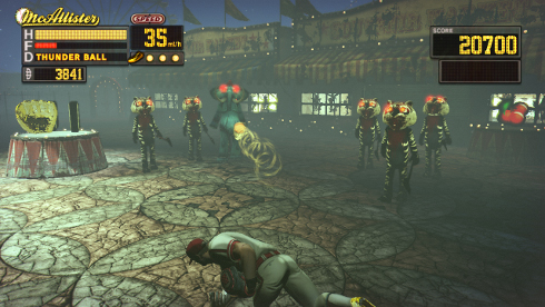 Gameplay involves actually making a throwing motion with one's arm to throw baseballs at possessed plush animals, giant wooden dolls, and other demented beings. If enemies get too close, making a kicking motion causes MacAllister to kick enemies away. Players only get a limited number of kicks per area, however; this can become a problem when tons of enemies swarm around the player and won't leave. For dealing with unique encounters, there's always the Diabolical Charge. Players start with a Fire Ball and Thunder Ball, and can unlock additional Diabolical Charges as they progress. Each one has a different effect, though I find the Thunder Ball to be best for large swarms of enemies, especially in the bonus areas.