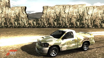An honorable Guardian in Coast Guard MSST 91103, serving in Guantanamo Bay, Cuba, contacted me a week ago. He asked me to make him a truck themed after his unit that he could drive in Forza Motorsport 3, and I obliged. I made all of the logos from scratch, as well as the desert camo paint job. His unit patch alone contains 325 shapes, and I think I reproduced it pretty darn well. Here's the original for reference: