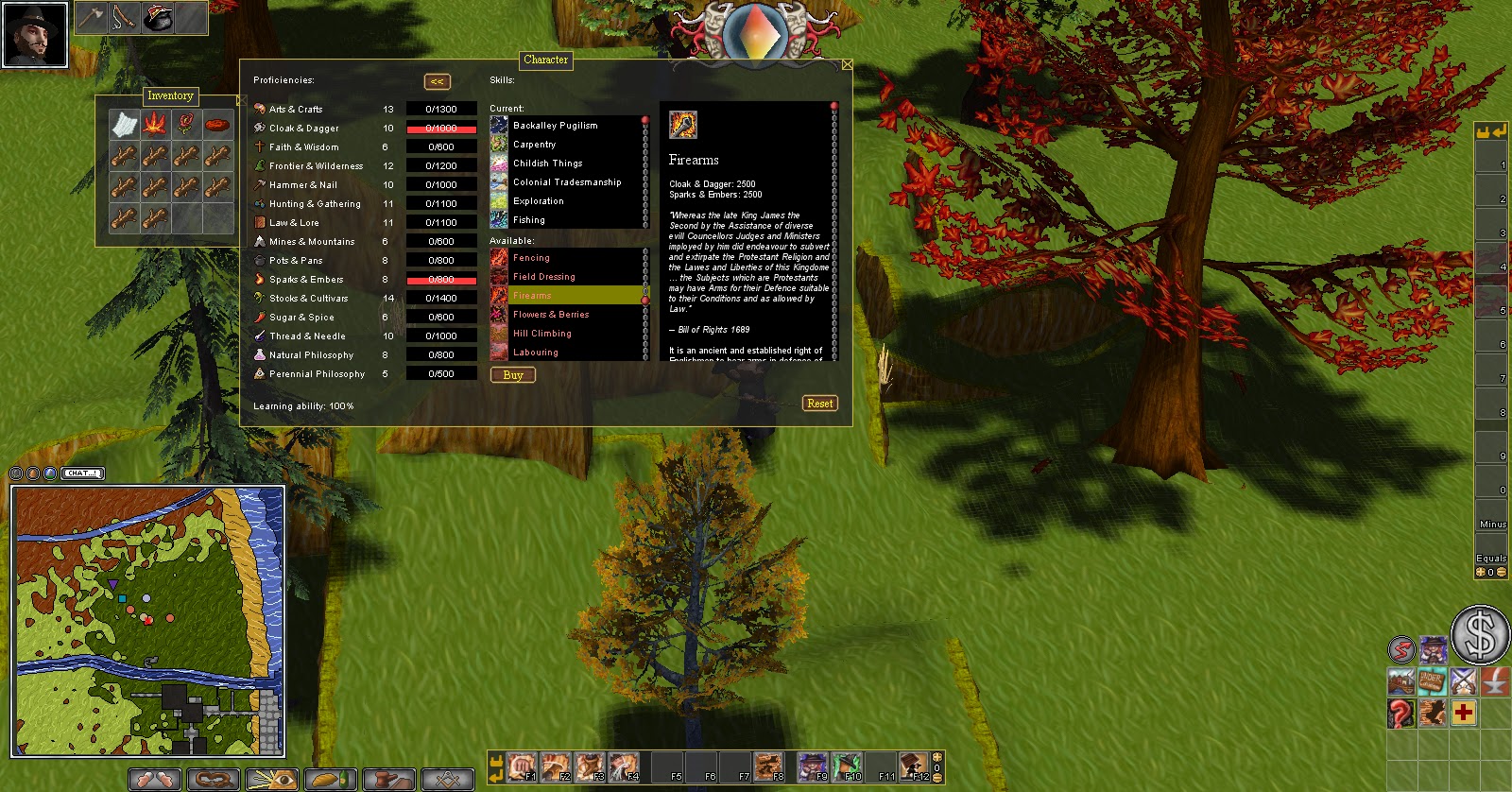 Despite all this, I have kept at it and continued playing Salem trying to disregard the frustration. As of writing this, my character finally earned enough money to purchase his first plot of land. This was a great sense of accomplishment but it took at least 10 hours of game time for me to get as far as I did. The game doesn't seem to get that much easier in this aspect because even though you start to rely less on some of the lower level items you eventually need to start hunting for other things to level your skills up. I think that I definitely need a map with a X on it.