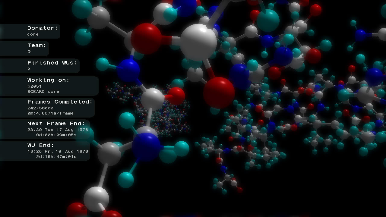 Folding became our favorite game, but it wasn't a game at all...maybe it was some sort of a metagame. Halo, Battlefield, Call of Duty, Mary-Kate and Ashley: Magical Mystery Mall, and so on: We ignored all of these games that we played competitively with each other. We replaced them with Folding, the game that didn't require you to do much of anything besides dedicate time and energy in the most literal sense.