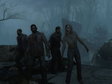 Jake, Laurence, Tim, and Rachel as they approached the party (corpses added for effect)