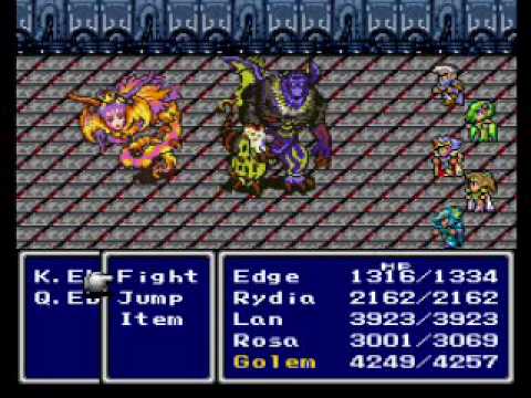 The next time an evil empire shows up is in Final Fantasy IV. The idea is thrown on its head right at the beginning as the protagonist, Cecil, starts as their “Dark Knight.” The game opens with him invading Mysidia and forcefully taking their Crystals for his own country, Baron. It is only when he unknowingly destroys yet another village through subterfuge that he sees his country for what it truly is. Once he finally confronts his King, he realizes that Baron is only a front for a much larger empire under the evil Golbez, complete with its own set of Generals (the Four Fiends), and several bases of operation (the moon, the Tower/Giant of Babil, etc). Though the idea of the "evil empire" is less overt in Final Fantasy IV (as your quest seems to be focused against just Zeromus/Golbez), keep in mind that each of your characters joins the quest due to a particular loss at the hands of the "empire" (the ninja Edge, the prince of Eblan, had his parents transformed into monsters at the hands of one of the Four Fiends), and the whole game focuses on righting these wrongs and stopping Golbez from invading the various kingdoms.