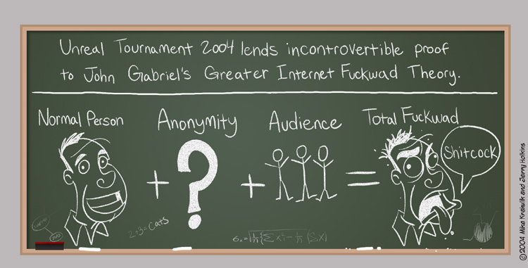 As the Greater Internet Fuckwad Theory states, anonymity eliminates the good nature among friends. And with an audience...humor devolves to the lowest common denominator, cruelty, until it becomes cruelty for the sake of cruelty.