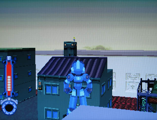Okay, sometimes the town is attacked by large robots, and the closed off sections of the city are eerily silent of music and mildly frightening. However, when I think back to why I enjoyed Megaman Legends so much it is mainly due to the bulk of the town where you have nothing to do but...well, whatever you please. Jump on cars, complete mini-games at the TV studio, help a group of boys build a clubhouse, and dig through trash to create obscenely powerful weapons. There is no time limit or feeling of urgency, just the ability to explore at your own pace.