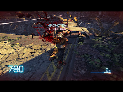 What's wrong with Bulletstorm? Well, first we've got to establish what Bulletstorm is. Bulletstorm is a game that involves shooting, kicking, leashing, and scoring. You mix and match these various elements while reducing digitized men into digitized men-bits. The more "skilled" you are doing so, the more score you are awarded.
