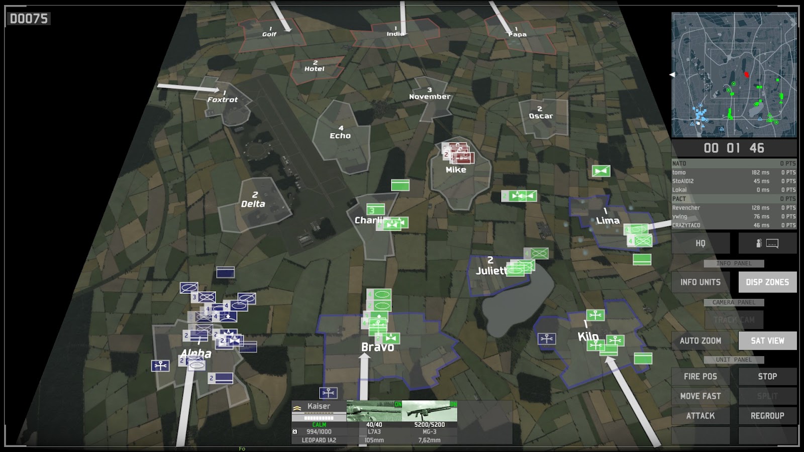 Moving on to the actual gameplay, one will find that it is actually very simple, and can possibly be compared to World In Conflict, if you increased the scale, slowed down the pace, reduced the frustration and removed "Off map support assets". It very much features the same concept, of deploying your units at the start of the match and then receiving command points from controlling various points across the map, which can be used to call in reinforcements. This is differentiated by there being two different types of control points, "control points" which grant you a certain amount of command points every few seconds, and "reinforcement points" which provide you with a point to bring units onto the field. Though out the battle, you gain points (score) by destroying enemy units. The amount of points is depends on the cost of said unit, so destroying 1 expensive unit is worth more that destroying 3 cheap ones. On top of this, there are only two different victory conditions in the game, point limit and a time limit. This main sound like a very limiting factor, but due to the nature of the game, it works perfectly. At the moment there are three ways of playing the game, “Campaign”, “Skirmish”, and “Multiplayer”. There are four different campaigns, two for each faction, each lasting around 4-5 missions. The story is your basic “Cold War gone hot” scenario without many twists, but what makes it interesting is the level of challenge the AI offers, as well as the persistent aspect. As you progress through the missions of a campaign, you can unlock more units to deploy, but be warned, any units you lose will be lost for the remainder of that campaign, meaning a costly victory in one of the early missions can mean that it can be almost impossible to beat the later ones. This forces you to play things safe, and thing about your decisions. The skirmish mode is the weakest link in the package at the moment with only one on one play for the time being (Co-op, “Comp-Stomp” is being added in a patch). The AI has 3 difficulties in skirmish, but there is little reason to play it, as you are not awarded command stars for you efforts. Multiplayer is the real meat of the experience, with an active and relatively nice community, with thousands of games being played a day at the time of writing this. Multiplayer allows you to play anything from 1v1 to 4v4, and even allows you to unbalance the teams (for example 1v4), to give skilled players a unique challenge.