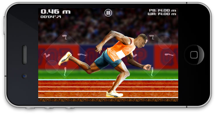 Qwop comes from a perpetually snow-covered country that has no racetracks to practice on. He is eager to run, but doesn't know how. The player has to help him win an Olympic Gold Medal -- and he's only four buttons away from victory. The graphically improved iPhone version features an even more elegant (?) control scheme: Each leg has four positions the player can cycle through.