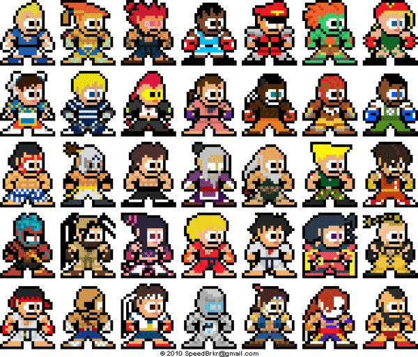 Out of all the possible Capcom crossovers, Mega Man and Street Fighter seem to be the least likely. But a pixel artist named SpeedBrkr disagrees. He put together artwork for every Street Fighter character -- transformed to fit into an 8-bit world.