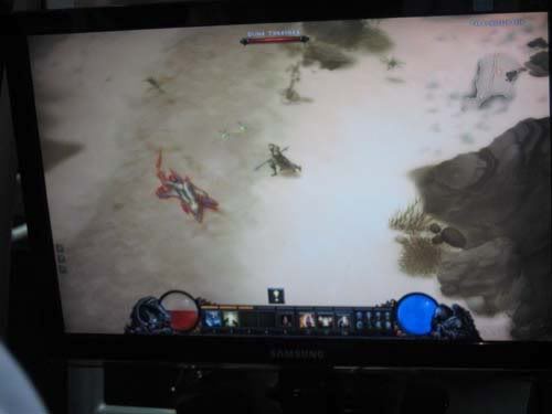 I wandered through a desert without any particular goal, battling various monsters with my staff and gathering loot. Fallen and Fallen Shamans were present, along with a few new creatures. From the skills I used and his lack of heavy defense, the Monk seemed to be more of a one-on-one fighter. That's not really my style, so I'm still going to stick with a Barb. As for the other gameplay elements, I didn't mind the health orb system, and the cooldown timer on potions didn't really bug me since I never needed to use one. The inventory system seemed the same as before, which I'm glad to see since I'd heard that Blizzard was changing it. Overall, I was satisfied with Diablo 3 and look forward to hearing the release date and the identity of the fifth class.