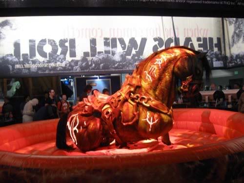After saying sayonara to my Bitmob colleagues, I returned to the expo. Wandering back to the exhibitor hall, I noticed a crowd around the mighty mechanical steed shown above. At this exhibit, the brave could attempt to ride on a bucking bronco from Darksiders. The line was quite long at the time, but I vowed to try my luck before PAX came to a close!