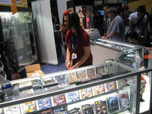 We eventually entered the exhibitor hall. The outer area no longer hosted the Bring Your Own Computer section, and now contained vendors like Pink Gorilla and the anime store Sweet Kitty, along with booths for some of the more independent companies. Since I'd already charted my course during the wait, I jetted past all these exhibits for the time being.