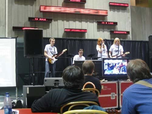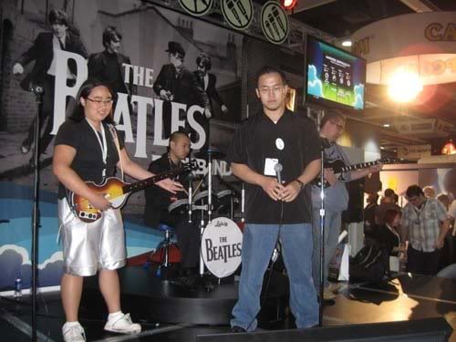 I soon ran into Nolan once again, so we headed over to one of the many stages showcasing The Beatles: Rock Band. I wasn't dying to play the game, but the mercenary within me was willing to play on stage in order to get a free shirt. Nolan and I were going to perform along with a random fellow who didn't have a group, but soon replaced him with my coworker Alisa and one of her friends. Don't worry, we made sure that the other guy found a group to play with! Our band performed the classic I Want to Hold Your Hand, and received applause from the crowd.