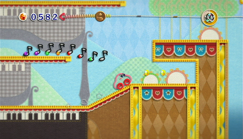 While I was overall very impressed with Kirby's Epic Yarn, there are a few things I wasn't crazy about. I didn't think that the collectables (other than the furniture you could put in your house) were very interesting. I also didn't find the story to be particularly engaging, though I will admit that it seemed to be better than your average Mario storyline. It wasn't bad or anything, I just found it a bit goofy, and I would almost always rather play a game than watch a cutscene.