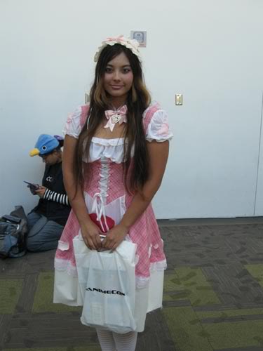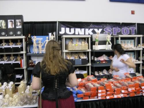 The dealer hall opened up about an hour ahead of schedule, so the three of us walked in to see what the vendors had to offer. Of course, I tried to navigate our group towards any booth that might possibly carry video games. During the scouting process, we passed the exhibit shown above, which sold creepy little Japanese dolls. No offense to those who buy these things or the shop's proprietor!