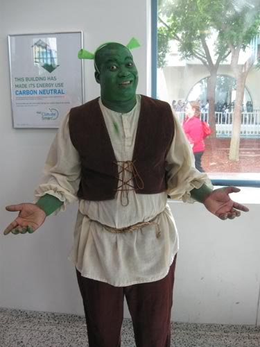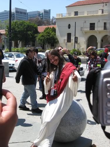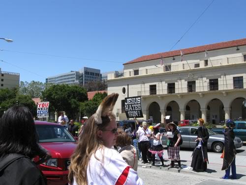 The three of us soon learned that part of the reason why many con-goers were lurking outside was because of protesters. Some crazed religious fanatics were outside holding signs and damning us all to Hell. Whatever, dudes. We got a bit of a chuckle from the chaos and headed inside.