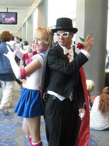 I decided to don my Tuxedo Mask costume for Fanime, although my cane had to be left behind since it wouldn't fit inside of my luggage. Andrew, Anthony, and I arrived at the San Jose McEnery Convention Center bright and early on Friday. Based on my yearly trips to Sakura-Con, I anticipated a lengthy wait in the pre-registration line. I was wrong! I'd estimate that we only had to wait for about 30 minutes.