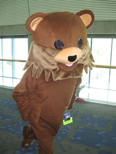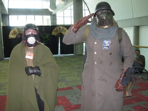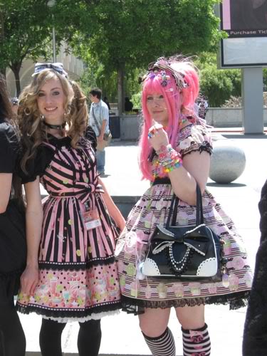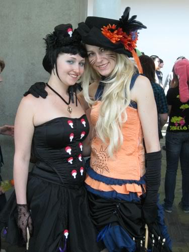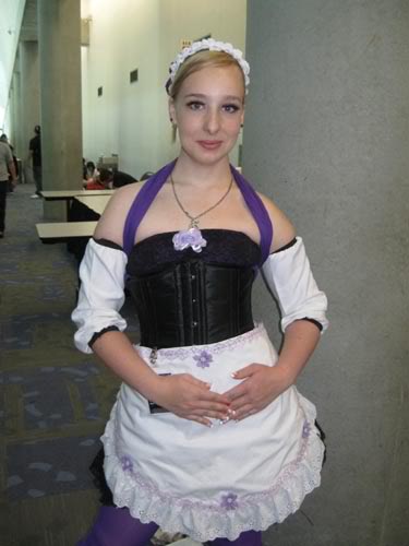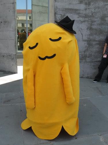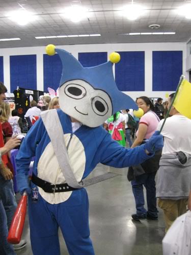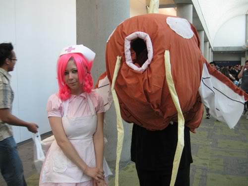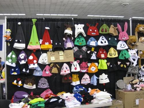 Sunday was not as busy as the previous day, but we still had a few things to do. Besides our usual cosplay hunting, we had two specific tasks on our agenda. First of all, Andrew's sister Julia wanted to invest in a cute hat. Julia gave us a quest to photograph some of the headgear being sold in the dealer hall so that she could see if they had anything interesting. I'd say that the vendor shown above had the best selection of hats.